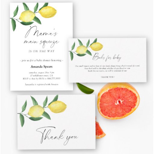 Niedliche Wasserfarbenlemon-Thema geschlechtsneutrale Babyduschkarte mit Darstellung eines Zitronenbaumes mit den Zitrusfrüchten. Verwenden Sie die Entwurfswerkzeuge, um den Text zu bearbeiten, die Farbe und den Stil des Schriftartes zu ändern, um ein einzigartiges Einladungs-Design zu erstellen. Matching-Elemente verfügbar.