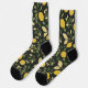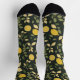 Leichte Zitronen und Blätter auf dunkelgrünem Hintergrund.