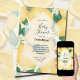 Elegante Zitronen und Grünpflanzen mit weißen Zitrusblüten, personalisieren diese Einladungen für eine geschlechtsneutrale, Baby- oder Babydusche oder einen besondere Anlass. PASSENDE Artikel in unserem Geschäft.