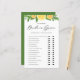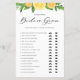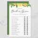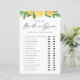 Raten Sie mal, wer? Braut oder Bräutigam? Fügen Sie diese lustige und festliche Er sagte, sie sagte Spielkarte zu Ihrer Veranstaltung. Es verfügt über eine Aquarellgarage mit Zitronen, Orangen und Grünpflanzen mit einem skurrilen Schriftzeichen. Personalisieren Sie diese, indem Sie Texte auf der Rückseite der Karte hinzufügen. Dieses Brautparty- oder Gräuel-Spiel ist ideal für Polterabend- und Sommerspiele.