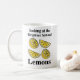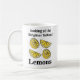 Lemons Fruit Blick auf die hellgelbe Lemons Coffee Tasse Original-Design von Nisha Prabhu. Genießen Sie den Tag mit unserer Tasse "Lemons Fruit Looking At The Brighter Yellow Lemons"! Diese reizvolle Tasse besticht durch ein fröhliches Design, das lebendige gelbe Zitronen zeigt und Sie daran erinnert, das Leben zu genießen. Ob Sie morgens Kaffee, Tee oder eine erfrischende Limonade trinken, diese Tasse ist ein idealer Begleiter für Momente der Sonne und der Ruhe. Ideal für Zitronenliebhaber und alle, die eine Touch Launen in ihrem Alltag genießen. Beginnen Sie Ihren Tag mit einer erfrischenden Note mit dieser auffälligen Tasse, die Sie sicher zum Lächeln bringt!