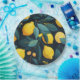 Gelbes Zitronenzitrusmuster Papiere Teller. Geeignet für botanischen Garten oder tropisches Party / Obst.