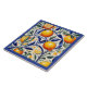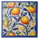 sommerliche sizilianische Keramik Kachel, italienisches handgemaltes Muster, mediterranes majolica portugiesisches Design, dunkelblau und weiß, marineblaue gelbe Zitronen, frische sommerliche Zitruskunst, kühn lebendiges portugales, authentisches klassisches Gemälde, rustikale Landhausferien, wirbelnde Zitronen-Wirbel