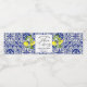 Zitronenzweig und blaues Mosaik-Brautparty Wasser Wasserflaschenetikett