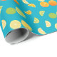 Dieses fruchtige Papier-Muster zeichnet sich durch Limetten, Zitronen und Orangen auf aquamarinem, blauen Hintergrund aus. Ideal für Leute, die gewollt haben, ihren Geschenken einen Pop hinzuzufügen.