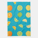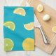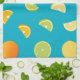 Dieses Küchentuch mit Limetten, Zitronen und Orangen auf aquamarinem, blauen Hintergrund. Ideal, um einen Pop zu jeder Küche hinzuzufügen.
