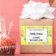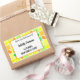 Ein Aufkleber mit essbaren Backwaren oder Konserven mit farbigen Zitrusfrüchtemustern aus Zitronen, Limetten, Orangen und Zitrusfrüchten auf Plätzen aus Weiß, Orange, aquamarin und Gelb, für Marmelade, Gelees oder andere Rezepte.