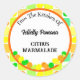 Ein Aufkleber mit essbaren Backwaren oder Konserven mit farbigen Zitrusfrüchtemustern aus Zitronen, Limetten, Orangen und Zitrusfrüchten auf Plätzen aus Weiß, Orange, aquamarin und Gelb, für Marmelade, Gelees oder andere Rezepte.