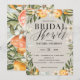 Zitrusfrüchte, Orangen + Blüten Brautparty Party Einladung. Schönes Aquarell-Blatt, Früchte und Blumenbilder. Party einer Sammlung.