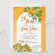 Citrus Orangen oh Baby Sommer Baby Dusche Einladung Sofortdownload. Babydusche zum Thema Citrus. Orangefarbene Orangenbänke, moderne, weiße Bogen-Rahmen, orangefarbene Blüten und grüne Blätter, kräftige, leuchtend orangefarbene Farben für fröhliche Persönlichkeiten.