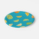 Diese Teller sind mit Limetten, Zitronen und Orangen auf aquamarinem, blauen Hintergrund gestaltet. Ideal für Menschen, die einen Pop in ihren Alltag gewollt haben. Ideal für Picknick, Abendessen oder einfach nur Essen vor dem Fernseher.