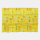 Das ist ein originelles abstraktes Zitrusfruchtmuster, das ich kreiert habe, mit Zitronen-, Limetten- und Orangenscheiben und einem Flickwerk-Weblook mit Streifen in sonnigen Gelb-, Orange- und Grüntönen und sieht fast wie Gingham kariert aus. Es ist ein cooles, zartes Teetuch im Sommer für Ihre frische und sonnige Küche. #lemons #limes #oranges #citrus #pattern