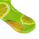 Eine helle, frische Frucht und ein fein gezapftes Design von Zitronen und Limonen Früchten, ganz fotografiert oder geschnitten. In einem zesty, tangy und saftig gestalteten Muster vor einem hellen, kalk-grünen Hintergrund angeordnet. Text in Kalkgrün lässt sich leicht an den Namen Ihrer Wahl anpassen