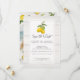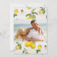 "Zitrusfrüchte Zitrusblütenblättriges, graues gelbes Foto Save the Date." Fügen Sie Ihre eigenen Verlobung Foto und Details zu einem von einer Art Save the Date, die von Freunden und Familie geschätzt werden! Handgemalte Zitronen, Zitronenblüten und Zitrusblumengrün kombiniert mit einer rustikalen, sanften, weich-weißen Holzfarbe für ein modernes, stilvolles Hochzeitstil. Hergestellt von Audrey Jeanne Roberts, international anerkannter Künstlerin und Designerin, Urheberrecht.