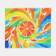 Eine wirbelnde Farbexplosion umgibt eine saftig orangefarbene Scheibe, die ein visuell atemberaubendes Stück bildet (Dieses Design wurde mit KI erstellt). Bestellen Sie noch heute und Embrace the Joy of Shopping!