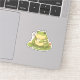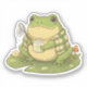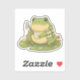 Adorable illustration of Zochi the cozy frog enjoying dew collecting in a peaceful forest setting, surrounded by mushrooms, lily pads, and soft warm tones. Perfect for nature lovers and cozy aesthetic fans.