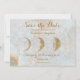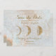 Faszinierende Imitate aus dem New Age Thema Gold Glitzer zodiac Wachsmond Save the Date Flachkarte mit himmlisch eisblau motbeltem Hintergrund und dekorativen Schriftart Karamellstypo Details, die leicht mit Ihrem eigenen Text angepasst werden können. Ein einzigartiges und elegantes Design für das moderne Ehepaar, das gerne auf Trend ist, aber mit einem geschmackvoll originellen Ansatz. Vollständige Einladungs-Suite für Hochzeiten in diesem Thema verfügbar.