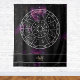 Ein eleganter und moderner zodiaktischer Wandteppich mit einem astrologischen Tierkalender mit dunklem Sternenhimmel und einem wunderschönen lila Nebel. Der Zodiakkreis zeigt alle 12 Sternzeichen und Sternbilder. Ein Astrologie-Geschenk, das eine perfekte Ergänzung zu Ihrer Wohngestaltung ist. Es ist einfach zu personalisieren, mit einem Platz für ein Monogramm und Namen, um diese einzigartige Touch hinzuzufügen.