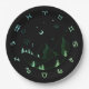 Auf der Astrologie-Party-Platte findet man Zodiac-Radbilder mit zentrierter Berglandschaft auf schwarzem Hintergrund