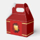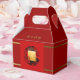 Roter Rat-Schnitt (gedrucktes Bild) auf der Ecke eines runden Bildes mit Drachen und Bambus-Silhouette und ein quadratisches Bild der 12 chinesischen Zodiakzeichen + Yin Yang Symbol mit Gruß in Englisch in der oberen (Goldschrift und Tropfen Schatten nicht anpassbar). Design auf Gable Gvor Box.