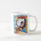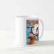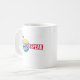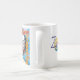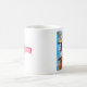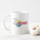 Zoe die Lieben des zweisprachigen Hundes auf Autofahrten. In der Original-Collage von ZoeSPEAK auf dieser Tasse sehen wir Zoe, der uns auf Englisch und Französisch einen Tachometer zeigt, mit einem kleinen gelben Auto, das vor blauem Himmelshintergrund vorbeifährt.