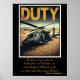 Ein Militärhubschrauber, der die Narben des Dienstes trägt, liegt abgestürzt und zerbrochen in einer trostlosen, sandigen Landschaft. Seine Rotorblätter sind zerschmettert, und seine Maschinen sind exponiert, eine krasse Erinnerung der Realitäten des Konflikts. Die trockene Wüste erstreckt sich unter einem klaren, unverzeihlichen Himmel und betont die Isolation und Desolation. Das Wort "Pflicht", geschrieben in einem kühnen, eleganten, gelben, kursiven Schriftart, steht im Kontrast zum dunklen Rahmen, der die Szene umrahmt. Das Bild betont Realismus und Details und fängt die düsteren Nachwirkungen der Schlacht ein! Die Freiheiten unseres Landes, die Freiheit unserer zivilen Verfassung, sind es wert, vor allen Gefahren geschützt zu werden, und es ist unsere Pflicht, sie gegen alle Anschläge zu verteidigen." - Samuel Adams.