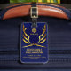 Frontline-Notrufdienste Gepäckmarke - Ein elegantes und auffälliges Polizeilogo / Emblem mit schweren Tensillen und einem Wappen in einem modernen blau-farbenen und Imitat-Golddesign, das mit dem Namen der Polizeibeamten personalisiert sein kann; Kontaktnummer; genaue Bezeichnung oder sonstige Informationen. Dieses Gepäckanhänger der Zollpolizei ist perfekt für die Familien der Polizei und der Strafverfolgungsbehörden und all diejenigen, die sie unterstützen. Sie eignen sich hervorragend für Reisen und die einfache Identifizierung beim Fliegen.
