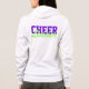 Großartig aussehende Cheerleader's weiße Reißverschlüsse, mit lila Drehtext vorne, und lila und hellgrüner Text, auf der Rückseite. Personalisieren Sie den Text, um zu lesen, was Sie gewollt haben.