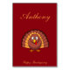 Benutzerdefinierte rote Erntedank-Platzkarten mit Putenbild und anpassbarem Text.