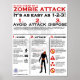 Zeigt dieses Poster an und lasse dem Uniformierten, was er im Falle eines Zombie-Angriffs tun soll! Es liegt an dir, das Wort zu verbreiten! Geh da raus und erziehe! Vorgestellt von der Zombie Emergency Tactical Agency!