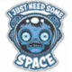 Vector Cartoon Illustration eines Zombie-Astronauten mit großen Augen in einem Raumhelm in Blautönen mit I Just Need Space Text. Tags: Astronaut, Kosmonaut, Helm, Zombie, Raum, Raumfahrer, Monster, Kadetten, Leiche, tot