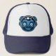 Vector Cartoon Illustration eines Zombie-Astronauten mit großen Augen mit einem Weltraumhelm mit einem gebrochenen Glasschild in Blautönen. Tags: Astronaut, Kosmonaut, Helm, Zombie, Raum, Raumfahrer, Monster, Kadetten, Leiche, tot