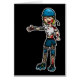 Passen Sie heraus auf. Die Zombies kommen. Sie wollen die Gehirne aller lebenden Menschen und Rollen-Derby-Mädchen sind keine Ausnahme! Schaut, wie sie ein auch got, und jetzt ist sie Hölle auf Rädern! Verbessern Sie aufpassen heraus! Ein Cartoon zombified Rollen-Derby-Mädchen in einer blauen, im Blut bedeckten und vermissten Schwarzweiss-Uniform einige Klumpen. Sie ist ein Arm vermisst und trägt einen gebrochenen Derby-Sturzhelm.