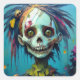 Zombie Doll with Yellow Eyes and Tattered Dress Quadratischer Aufkleber