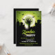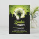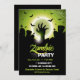 Set die Stimmung für ein Zombie-Party mit einer Hand aus dem Grab in einem Friedhof mit grünem Himmel, Vollmond, Fledermäuse und Spinnennetz.
