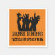 Diese Servietten sind der perfekte behieltest, um die Gäste des Party in dieser Halloween-Saison aufzuräumen. Das Design ist mit einem Haufen von Zombie-Händen, die nach oben reichen, und dem Text "Zombie Jäger" in schwarz mit orangefarbenem Hintergrund versehen, der geändert werden kann. Happy Halloween.