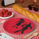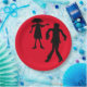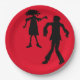 Zombie Party Papier Teller. Helle rote Farbe mit zwei wandelnden Zombie-Bildern in schwarz. Spaß zum Geburtstag mit einem Horror oder zu Halloween.