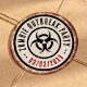 Vintage look round sticker for a zombie themed party, with weathered sign.