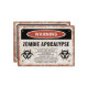 Vintage Einladung für ein Party zum Thema Zombie-Ausbruch mit einem verwitterten Warnschild und Symbolen für die Biogefährdung. Karo mit der passenden Kollektion für KOORDINIERENDE Objekte. Original Kunstwerke von PUPSIKU STUDIO. 100% exklusiv.