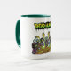 Dieses Halloween-Design präsentiert eine Zombies-Gruppe im Stil eines Cartoon, die Pizza isst, zusammen mit dem Text "Toter Hunger". Das ist ein lustiges Design, das für Halloween-Party-Abende kreiert wurde.