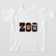 Zoo, Tiger, Zebra im Wort Zoo. Unterstützung unserer Zoos. Fügen Sie Ihren eigenen Text an, um ihn anzupassen.