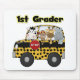Zootiere einschließlich einen Zebra, einen Affen, eine Giraffe und eine Flusspferdfahrt der gelbe Schulbus zum 1. Grad auf unseren Zoo-Tier-1. Grad-T - Shirts, Tassen, Karten, Aufkleber, Tasche bauscht sich, Sweatshirts und anderer Gang des ersten Grades.