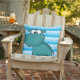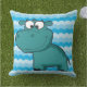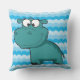 Kissen im Freien mit hübschem, blauen Hintergrund und einem niedlichen Cartoon blauer Hippo!