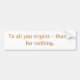Zu allen Sie Jungfrauen - Dank für nichts Autoaufkleber