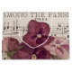 Ein Stillleben von vier rosa Stiefmütterchen auf einem Vintagen Notenblatt mit dem Titel "Unter den Stiefmütterchen". Fotografie von Sandra Foster © Sandra Foster Designs - Zazzle.