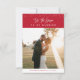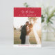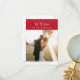 Ein festliches Design mit einem Foto der Neuvermählten und einem hübschen weißen Pinselskript auf rotem Hintergrund. Die Merkmale dieser Karte können personalisiert sein.