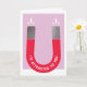 Diese gefaltete Valentinstag Grußkarte weist einen hellroten Magneten auf, der lautet "Ich bin zu Ihnen angezogen". Im Inneren steht "Unsere Verbindung ist magnetisch" Diese sonnige Karte ist perfekt für alle Bühnen einer Beziehung.