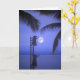 Gerahmt durch Palmewedel, zwei Silhouetten am nightime, oben gehend eine Leiter als ob für den Mond, von einer Skulptur an der Promenade in der Hafenstadt von Puerto Vallarta erreichen, Mexiko. Digital-Effekte addiert. Fotografie durch Minerva Blüte.