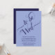Diese schöne Hochzeitseinladung ist einfach und elegant zugleich. Das blaue und marinebfarbene Design zeichnet sich durch eine extravagante Kalligraphie aus, die in den oberen 2/3 der Leinwand mit einem einfachen Text unten "zu beten" ist. Modernes minimalistisches Design.
