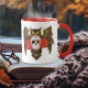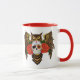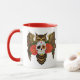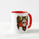 Eine braune, große Hornkeule mit einem Tag des toten Zuckerschädels und der rote Rosen